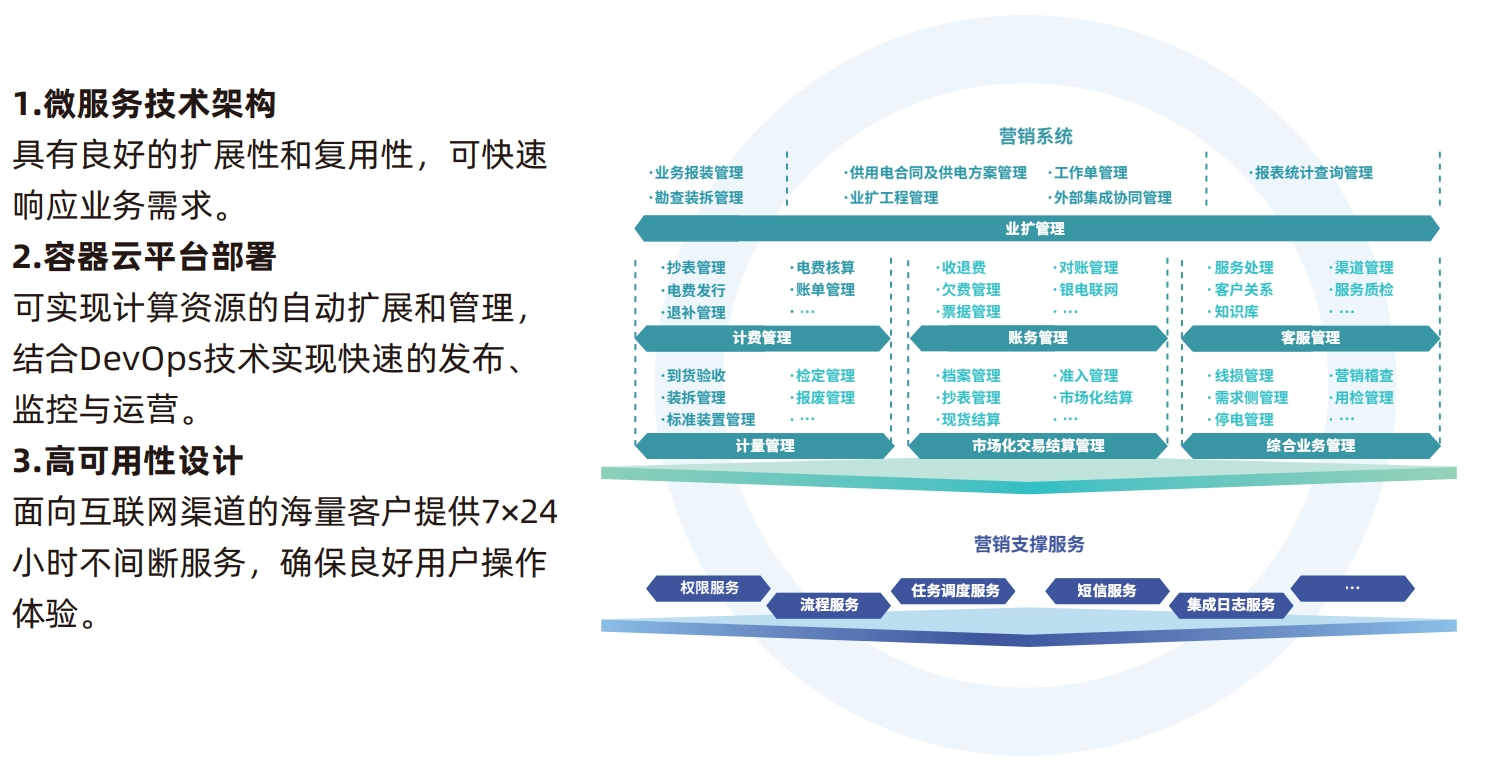 µçÁ¦ÓªÏúÖÎÀíϵͳͨ¹ý΢·þÎñƽ̨¹¹½¨£¬²ð·ÖΪ100¶à¸ö΢·þÎñ£¬×ÝÏò¼¯ÈºÖÎÀíÊý°Ù¸ö΢·þÎñÊ·ý¡£Óɵ¥Ìå½»¸¶Ä£Ê½×ª±äΪ΢·þÎñÔÆÔÉú½»¸¶Ä£¿é£¬ÏÔÖø¼ò»¯Á˽»¸¶Á÷³Ì£¬½µµÍÁ˸´ÔÓÐԺ͹¦·òÑÓ³¤¡£ÏµÍ³°ä²¼Õ½Êõ´ÓÁ½ÖÜÒ»Ó×°æ±¾¡¢°ëÄêÒ»´ó°æ±¾µ÷ÕûΪ°´Î¢·þÎñÄ£¿éËæÊ±½»¸¶ËæÊ±°ä²¼£¬´ó´óÏ÷¼õÁ˽»¸¶¹¤×÷Á¿¡£ÕûÌåϵͳ²»±äÐԵõ½ÏÔÖøÌáÉý£¬Îª½«À´·¢Õ¹µì¶¨Á˼áʵ»ù´¡¡£